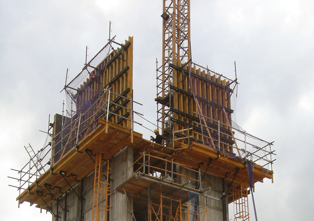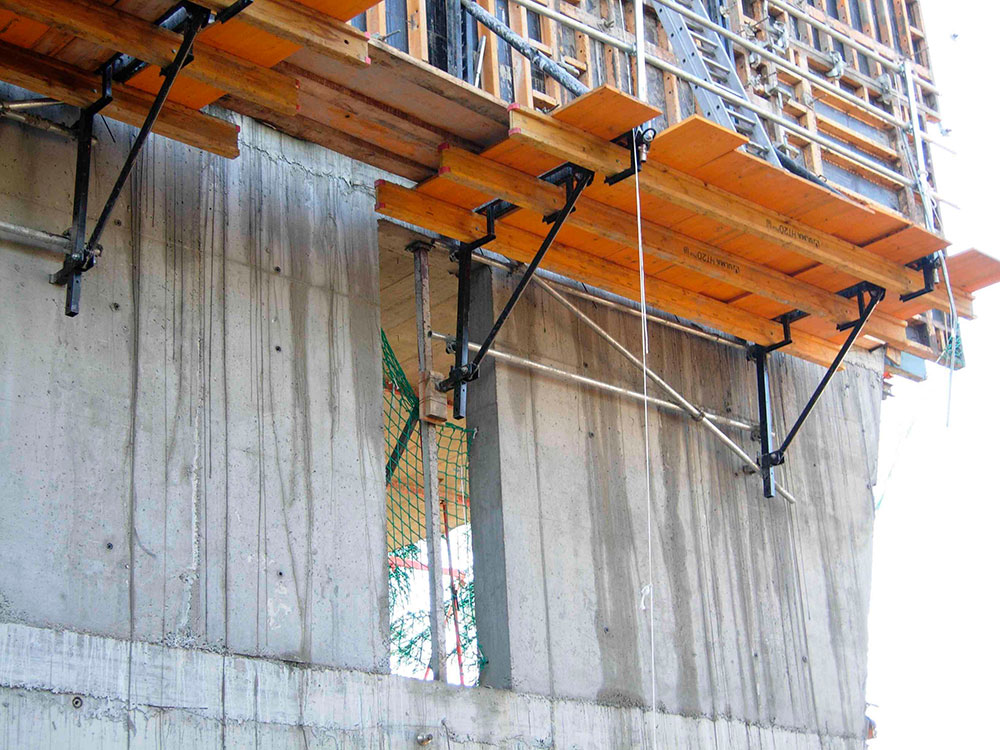 O sistema de fôrma com consoles BF-170 é indicado principalmente para concretagens de elementos com 2 faces (pilares, paredes, etc.) e está baseado no apoio sobre os cones de ancoragem, que ficam embutidos no concreto na fase anterior.