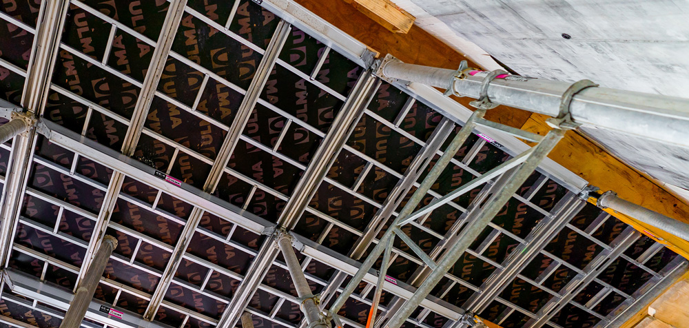 Compensado SPRUCE: Econômico e leve, garante um acabamento de concreto liso. Compensado de lâminas de abeto coladas, revestido com película fenólica lisa e resistente ao desgaste (120 g/m²).