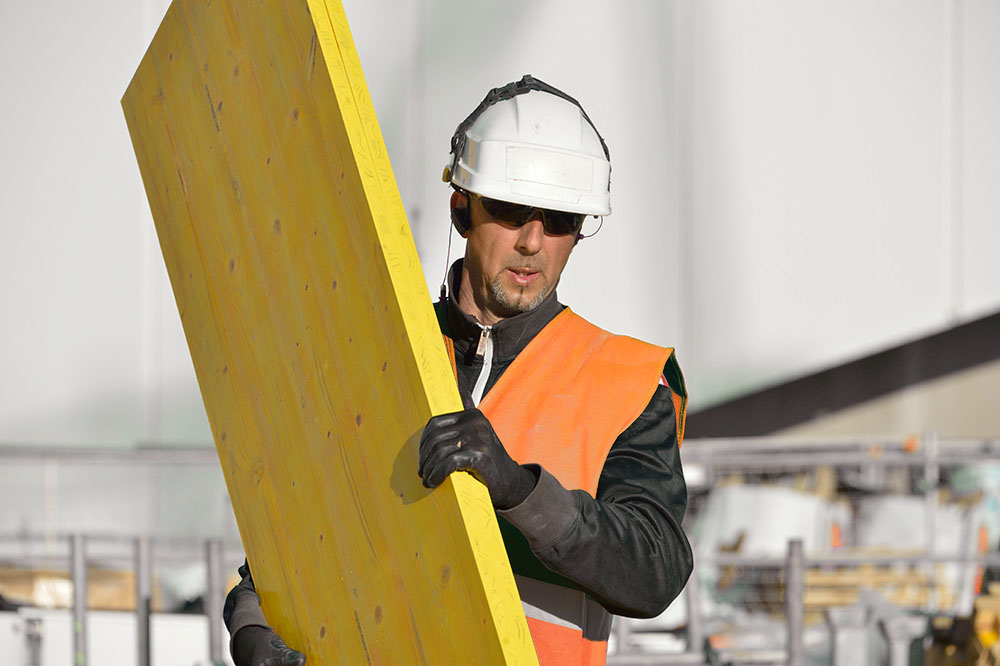 Composto por três capas de abeto aderidas. A colagem AW 100 é realizada segundo a norma ÖNORM B3023. As fibras da primeira e terceira capa (A) são perpendiculares a da segunda capa (B).