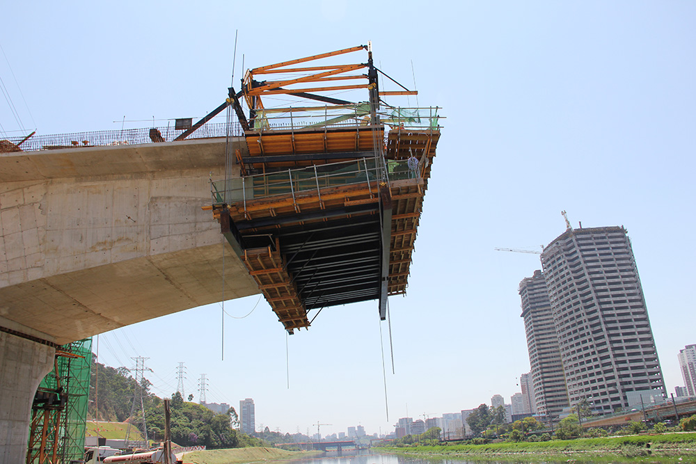 O vão entre as duas extremidades do rio pinheiros tem aproximadamente 113 metros de comprimento está sendo executado através de balanços sucessivos. A Odebrecht, construtora responsável pela obra, escolheu o Sistema de Carro para Balanço Sucessivo CVS da ULMA Construction, referência mundial em soluções de fôrmas e escoramentos para obras de grande volume e complexidade. As vantagens tecnológicas do CVS consistem em seu sistema hidráulico de movimentação, alta capacidade de carga e leveza, que proporciona agilidade e economia.