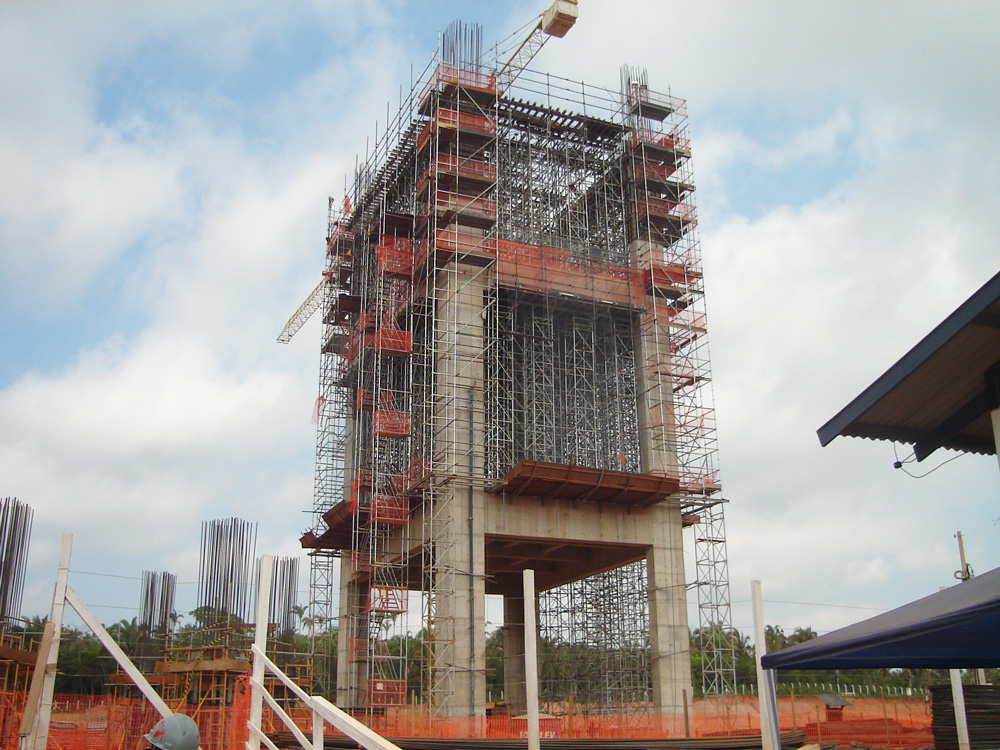 A estrutura vertical de um dos edifícios industriais superava os 110 metros de altura, para qual foram utilizadas torres de Cimbre T-60. Concebidas para cobrir alturas consideráveis assim como para o escoramento de grandes lajes, executadas neste caso com um sistema de Vigas BTM.