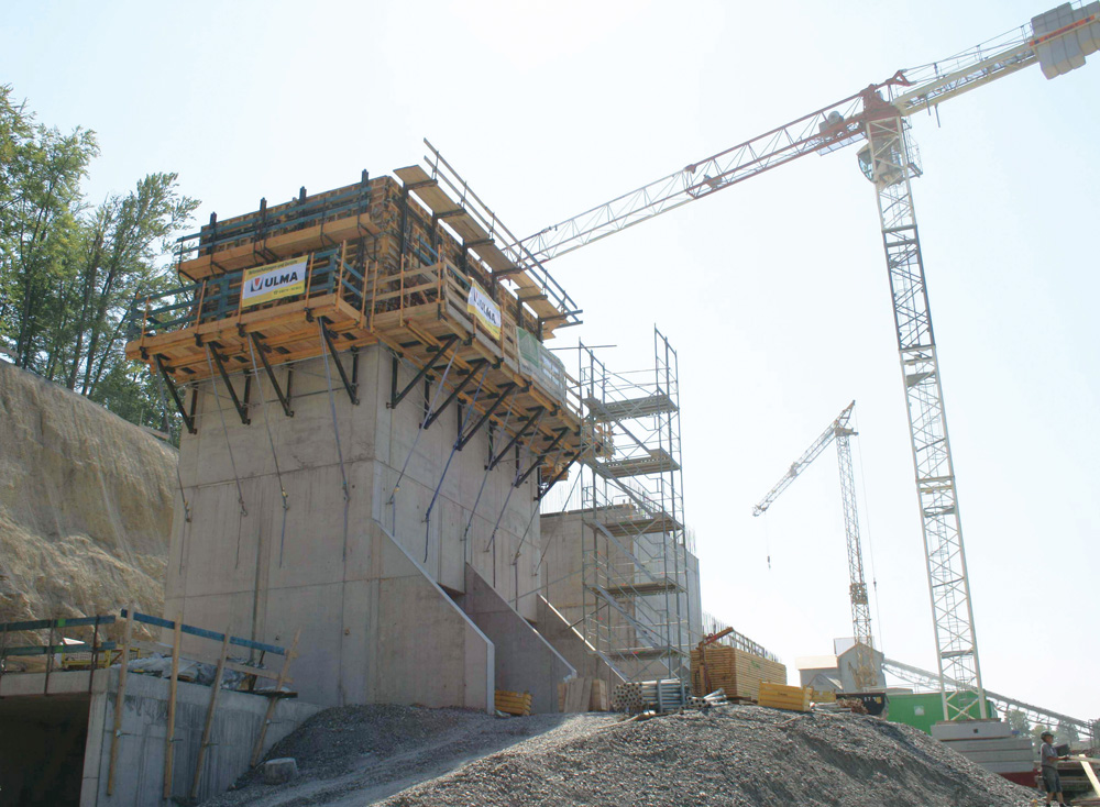 Dentro dos núcleos internos são empregados Plataformas KSP de 5,9 m de luz, com Riostras MK-180 e encaixes deformáveis. O Console CR-250 funciona como uma plataforma de apoio e sistema trepante, com a Fôrma Vertical ORMA e sistema de retranqueio para a desforma. Todas as plataformas e formas moveram-se horizontalmente para o silo seguinte sem alterar a sua geometria, de acordo com o plano de construção previsto.