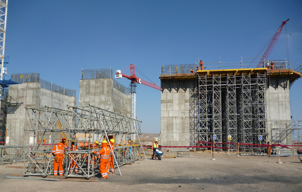 Para o restante do projeto, foram utilizados CONSOLES BMK para as plataformas de trabalho e fôrmas monoface. O sistema MK também foi utilizado para as velas e vigas primárias.