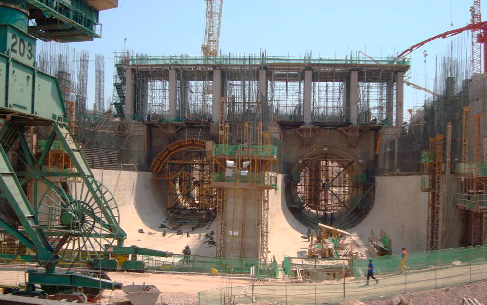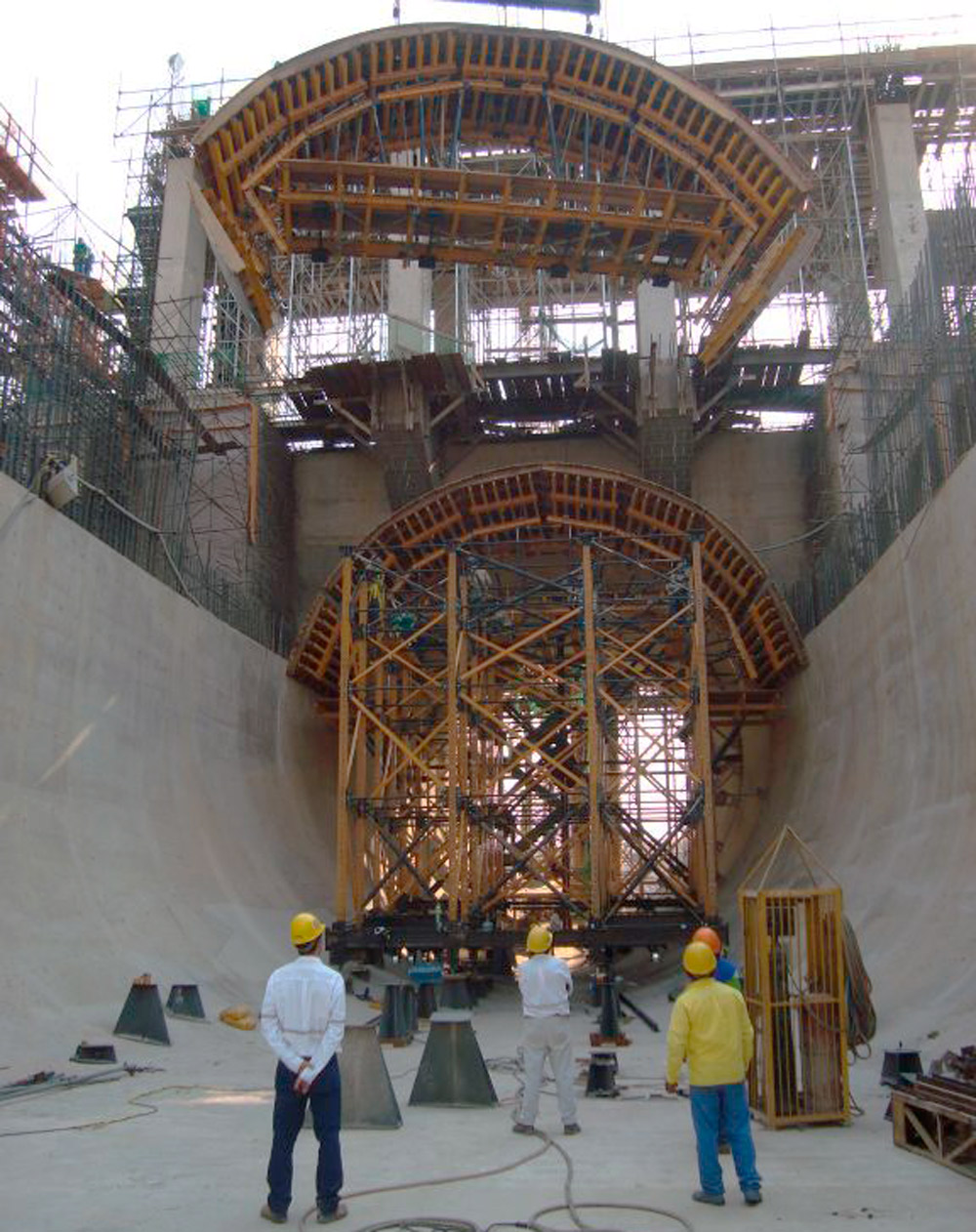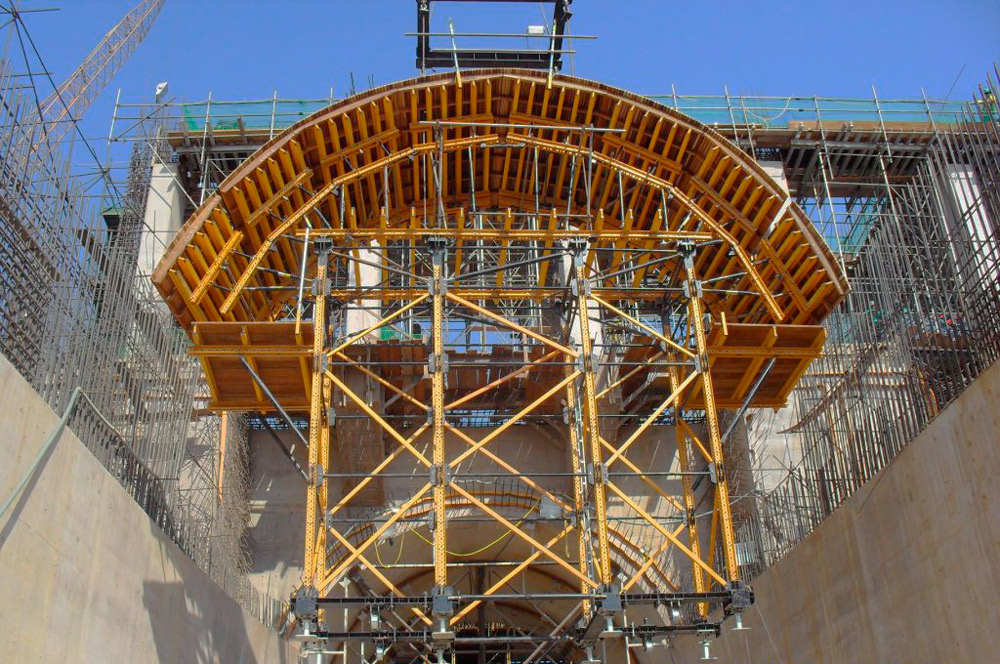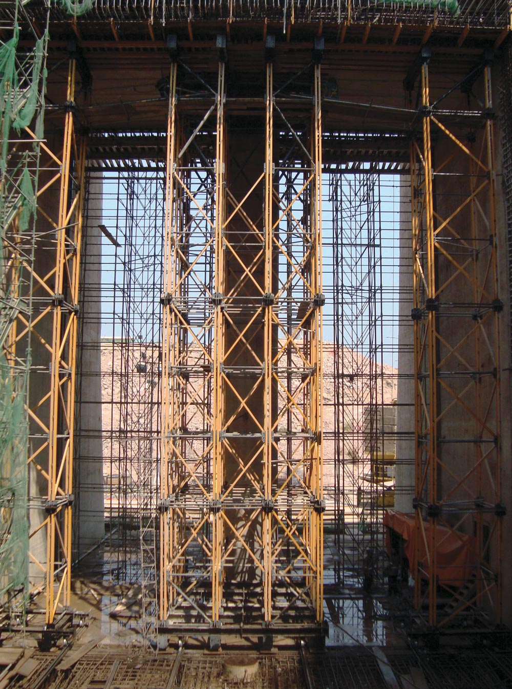 Para lidar com as dimensões das estruturas da tomadas de água (18 m de altura e 2,5 m de espessura de concreto), foram utilizadas duas torres móveis conjugadas de Cimbre MK-360 e Fôrma ENKOFORM HMK e VMK. Além disso, a tarefa de montagem e desmontagem foi simplificada, graças ao sistema de movimentação sobre rodas do carro para nova área de utilização.