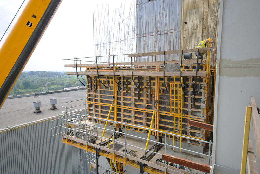ULMA utilizou pela primeira vez na Polônia o sistema auto-trepante ATR, que resolveu o espaço, limitado da obra e o complexa utilização de grua para a movimentação das a fôrmas. Cada núcleo inclui três poços de elevador totalizando seis cilindros hidráulicos. Foram realizadas 19 movimentações de fôrma, por meio dos poços. O sistema ATR permite o trabalho sem grua, antes um problema. Além disso, as plataformas extensas e guarda-corpo garantiram a segurança do trabalhador.