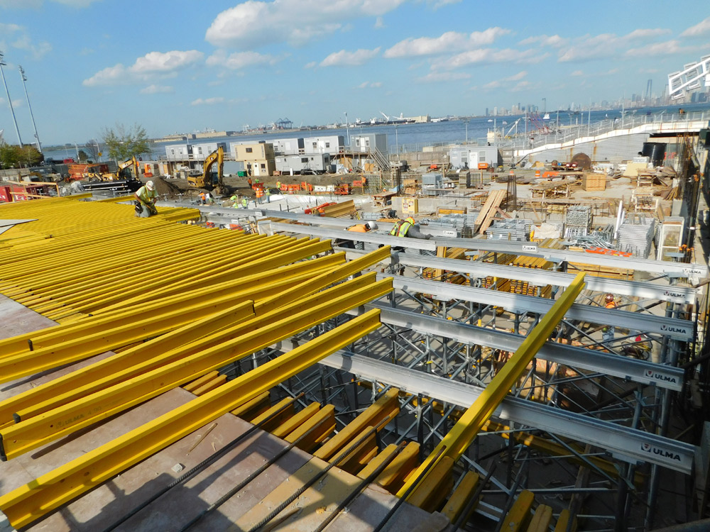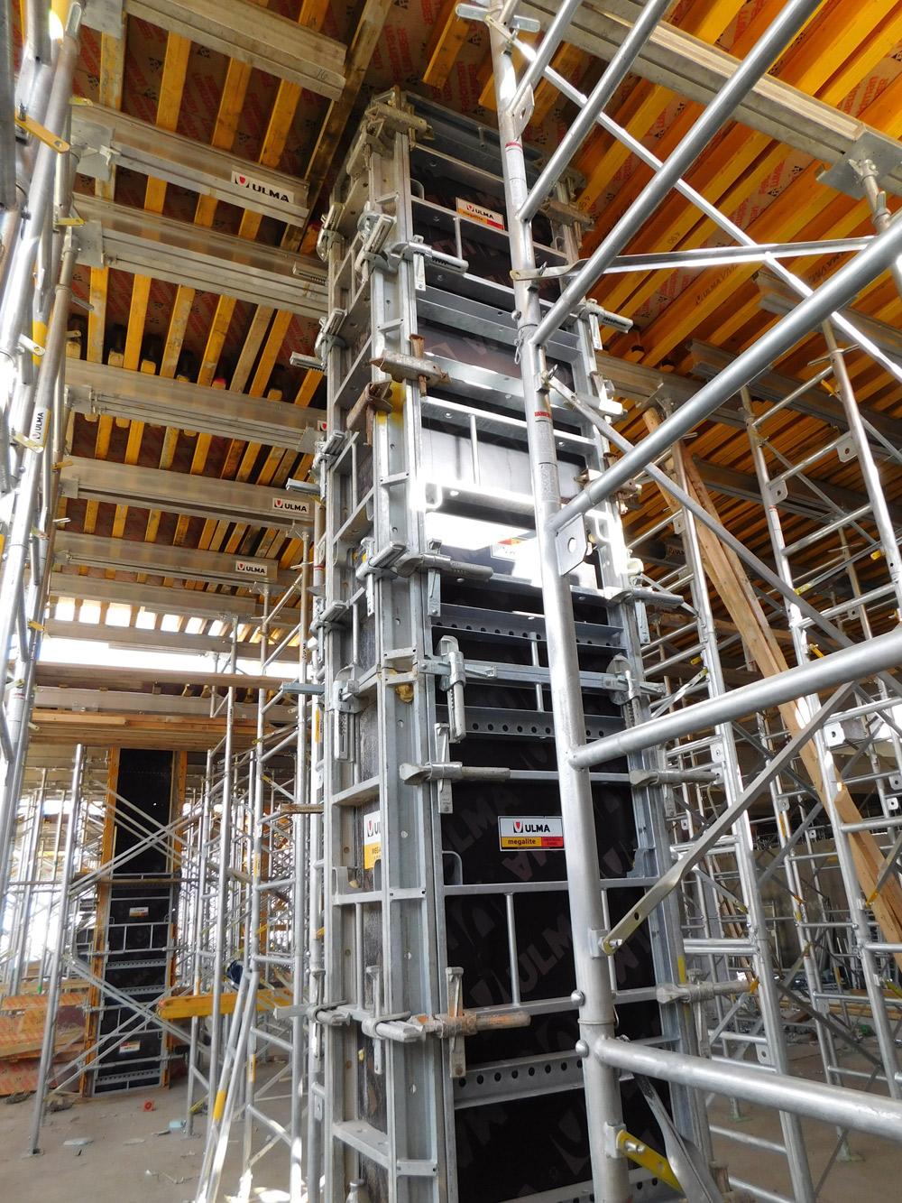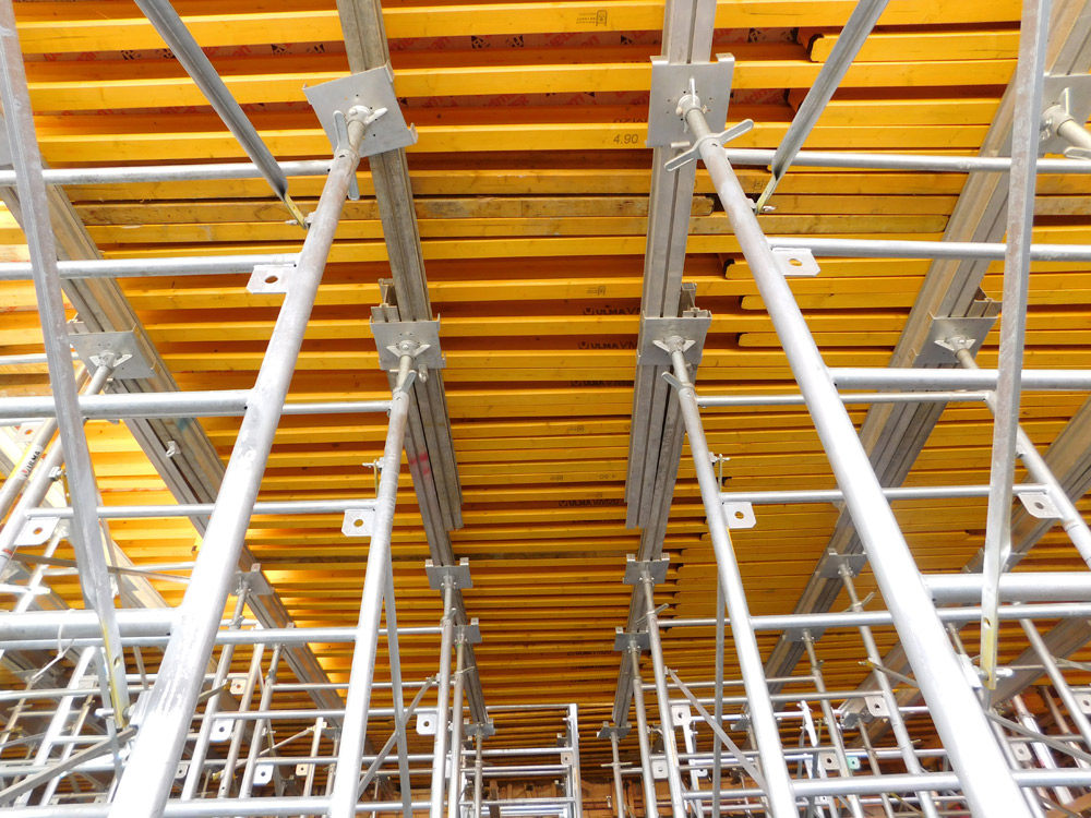 A ULMA forneceu cerca de 10.000 m² de escoramento MEGAFRAME para os espaços onde a altura entre lajes superava 7,5 m de altura e espessuras de 70 cm. Galvanizada e com diferentes medidas de quadros para se adaptar as alturas necessárias, é ideal para aqueles espaços com formatos irregulares, onde os sistemas reticulados padrão não são muito rentáveis.