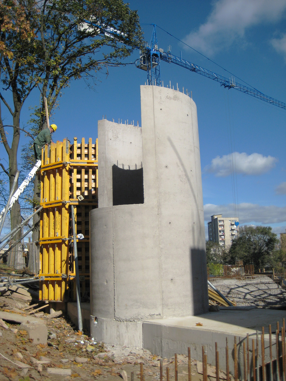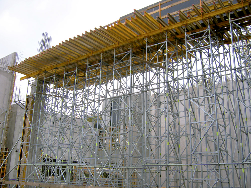 O desafio foi a construção em uma só fase, de paredes de 10 m e pilares de 15 m de altura de concreto aparente, sobre os quais se construíram vigas horizontais de concreto. Na construção destas vigas, utilizaram-se torres T-60 de 11 m de altura e fôrmas verticais modulares.
