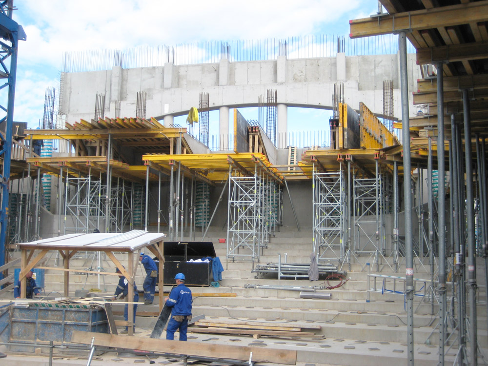 As paredes do salão principal, a zona mais alta de todo o edifício, foram construídas em ciclos de concretagem de 6,6 m de altura, com a utilização de painéis de 2 x 3,3 m, de fôrma modular. Foram permanentemente utilizadas plataformas de trabalho e de concretagem que garantiram a segurança dos trabalhadores durante toda a obra.