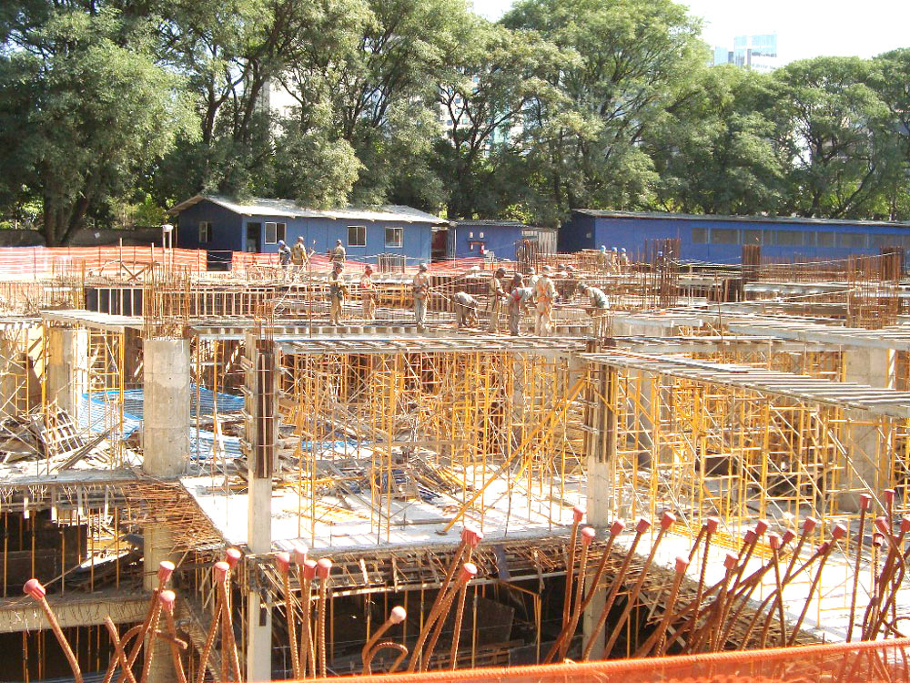 Com um total de 450 m2 de fôrma COMAIN foi utilizado em reservatórios inferiores e pilares. Os sistemas de Cimbre G e BRIO destinaram-se para a Periferia e Pré-tipo com diversos PD – Periferia de aproximadamente 30.000 m2 divididas em trechos de aproximadamente 1.500 m2. Para o Tipo foram utilizados os sistemas BRIO e ENKOFLEX de aproximadamente 1.000 m2 com 32 pavimentos, totalizando 32.000 m2.