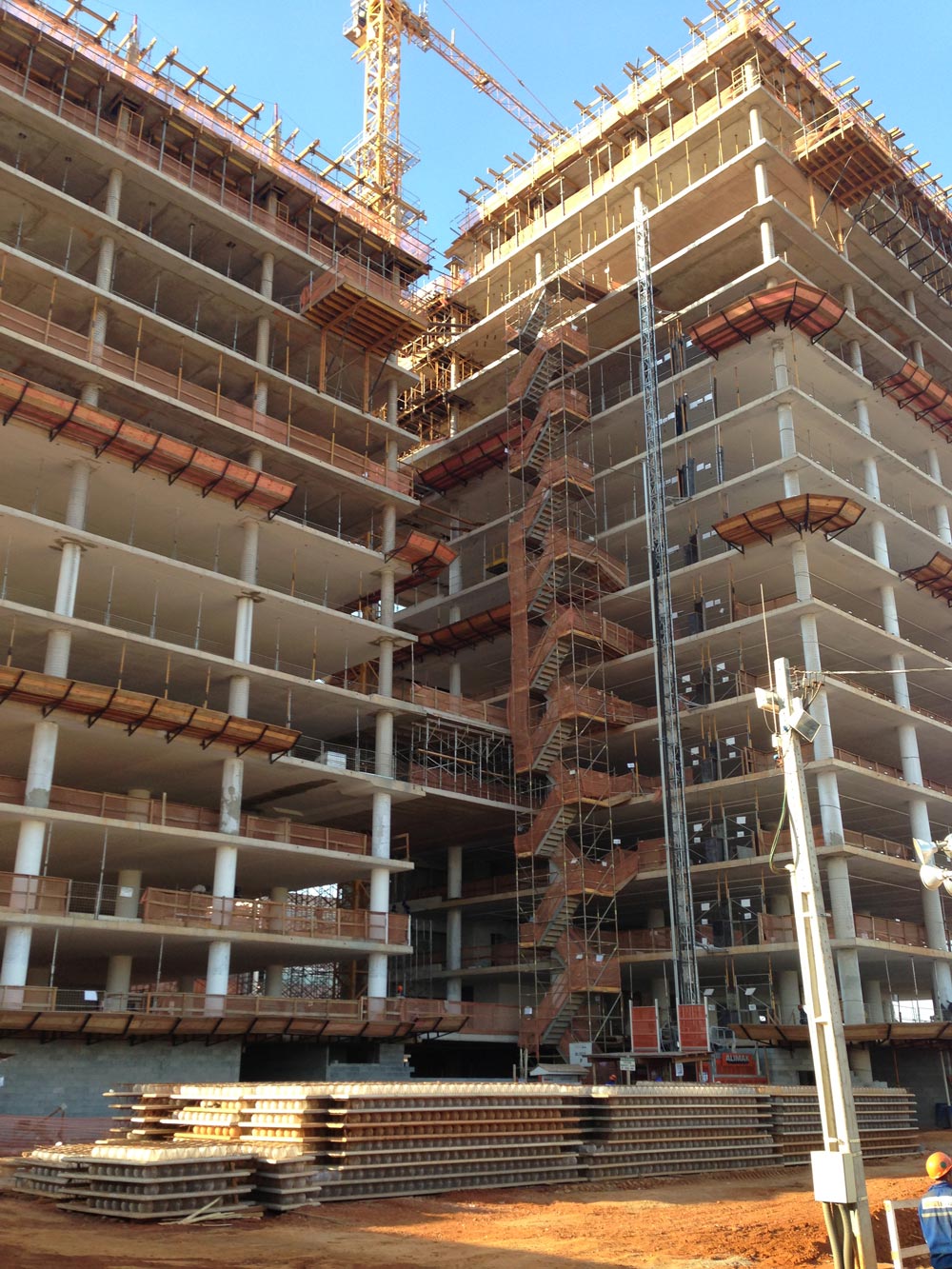 Por fim, o Andaime Multidirecional BRIO está sendo aplicado no acesso às diversas áreas da obra, oferecendo acesso livre e seguro dos trabalhadores aos diversos pavimentos dos blocos que estão em execução.