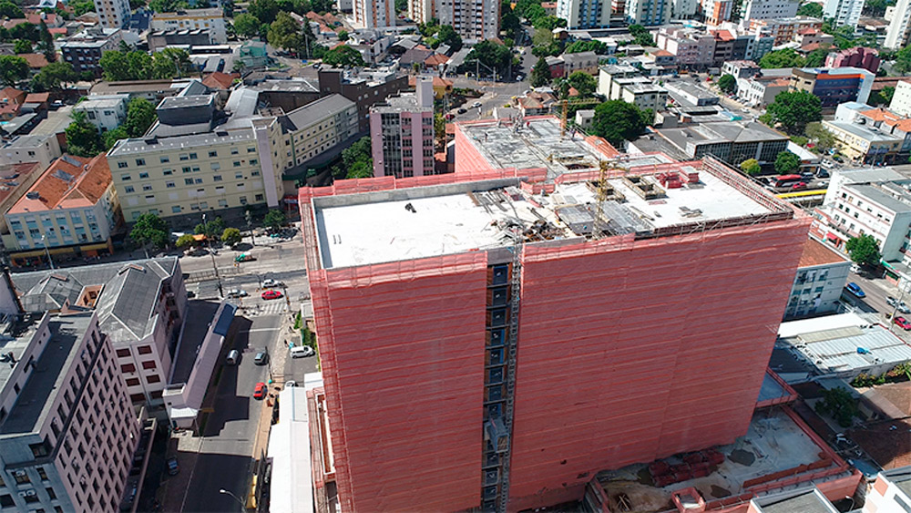 Um dos desafios da obra era garantir o acesso prático, rápido e seguro de funcionários para a realização de atividades importantes, como por exemplo a proteção das juntas de dilatação do edifício. Nesse caso específico, vale ressaltar que cada torre do empreendimento – formada por três juntas construtivas – subiu com uma defasagem de dois ou três pavimentos.