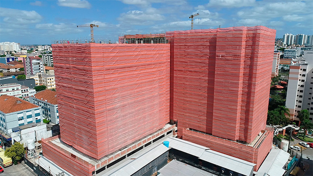 Responsável pela obra, a Cyrela Goldsztein recorreu ao andaime multidirecional BRIO da ULMA Construction, uma solução formada por postes de segurança, guarda-corpo e plataformas antiderrapantes que garante rápida montagem e grande flexibilidade para cobrir as mais complexas geometrias – características importantes que resolveram o problema de acesso de funcionários para a execução das juntas de dilatação das torres.
