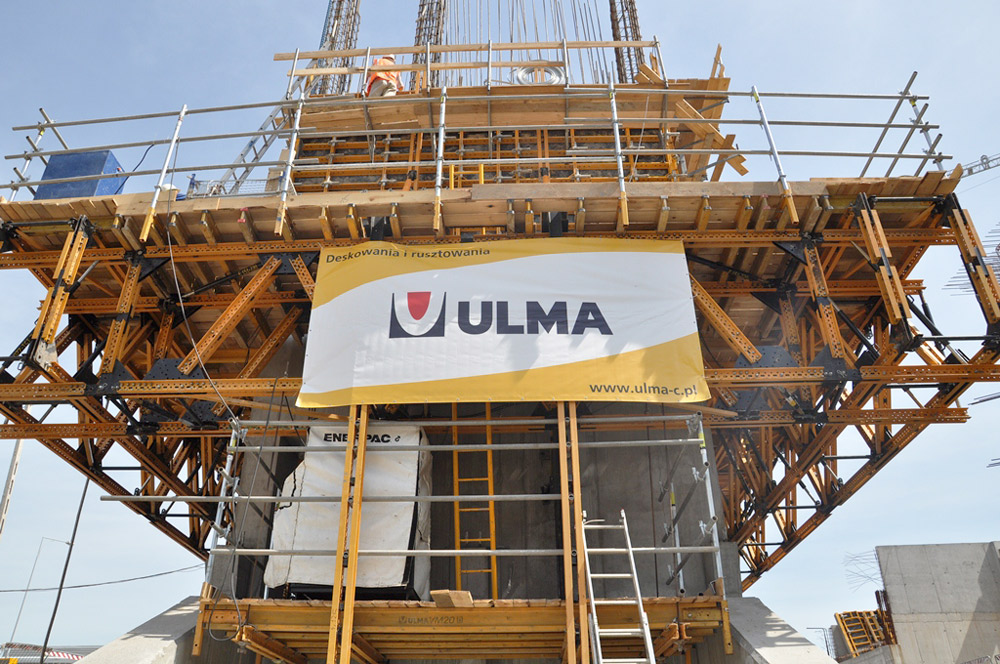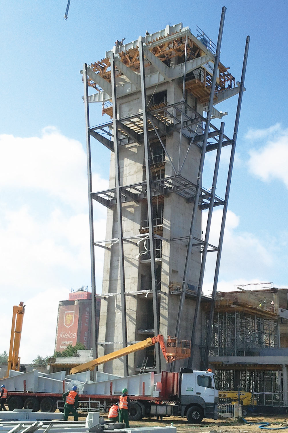 O interior da estrutura foi executado com a plataforma interior KSP, içada por grua e que forma a plataforma de suporte para a fôrma. O Andaime multidirecional BRIO assegurou a passagem vertical entre os diferentes níveis. O Cimbre T-60 e a fôrma de lajes e vigas permitiram a execução das estruturas horizontais.
