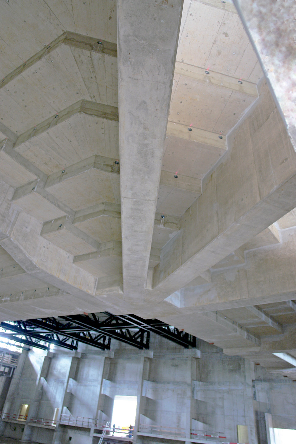 Um edifício desta magnitude necessitou do produto mais adequado para cada solução: Fôrma ORMA para a construção de paredes, Mesas VR para a laje e estruturas de Cimbre T-60 como sistema de transmissão de cargas. Estes sistemas proporcionaram em todos os momentos, o acabamento de concreto aparente requerido pela obra e a adaptação às diferentes geometrias.