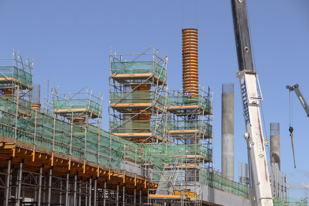 No novo terminal esta sendo feita a construção dos pilares com a fôrma CLR de dois diâmetros (1,20 cm e 1,50 cm) e pilares solteiros de 23 m de altura. O corredor também esta erguendo pilares com o sistema CLR. O Pier B também esta com as mesmas soluções, ou seja, CLR, ALUPROP e BRIO.
