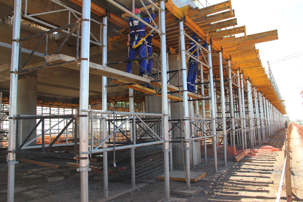 Em suma, o COMAIN esta sendo utilizado para construção de fundo e lateral das vigas; ALUPROP como sistema de escoramento de vigas e lajes e o BRIO como andaimes e plataformas de trabalho. Sendo assim, os sistemas ULMA estão sendo utilizados nas construções do Pier A, Pier B, corredor e do terminal de passageiros de Viracopos.