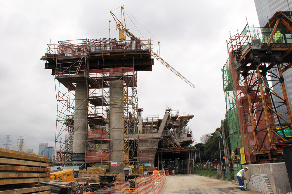 De acordo com Marcelo Passerotti, Engenheiro de Produção da Camargo Corrêa Infra, “O sistema de Treliças MK foi utilizado para vencer uma estrutura em balanço, que tivemos a necessidade de construir para o corpo da estação Morumbi, uma parte desse corpo é em balanço sobre o Rio Pinheiros, então foi desenvolvida uma solução de engenharia juntamente com a ULMA e a Camargo Corrêa Infra, para que a gente conseguisse montar o cimbramento que pudesse sustentar esse corpo da estação neste trecho em balanço. Os painéis COMAIN forma utilizados para fôrma da estrutura, principalmente dos pilares e vigas travessas, foram bem aplicados por permitir adaptar nas diversas geometrias da obra, e como é possível observar, a estrutura tem bastante variação, nenhuma peça é igual a outra, e as fôrmas foram aplicadas de acordo com a modulação de cada geometria, foi um sistema que um projeto bacana que atendeu as nossas necessidades. O resultado disso é um concreto de boa qualidade.” afirmou Marcelo.