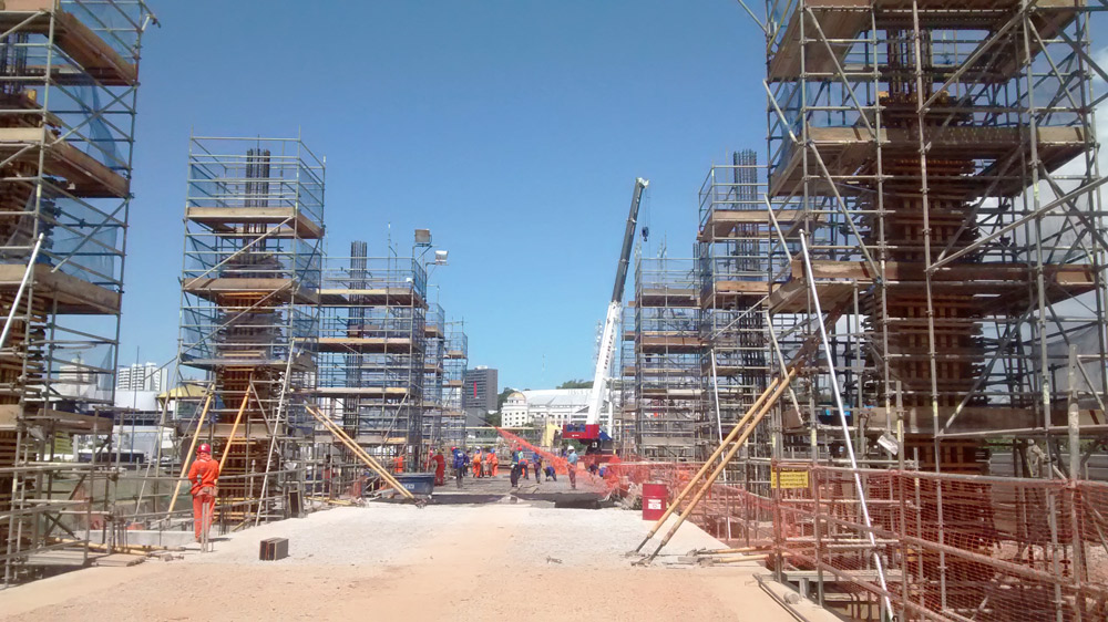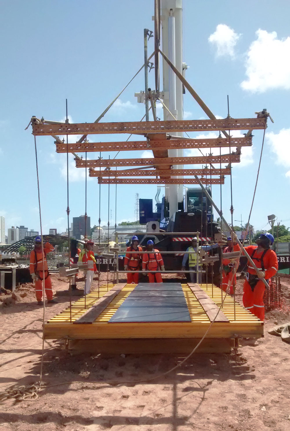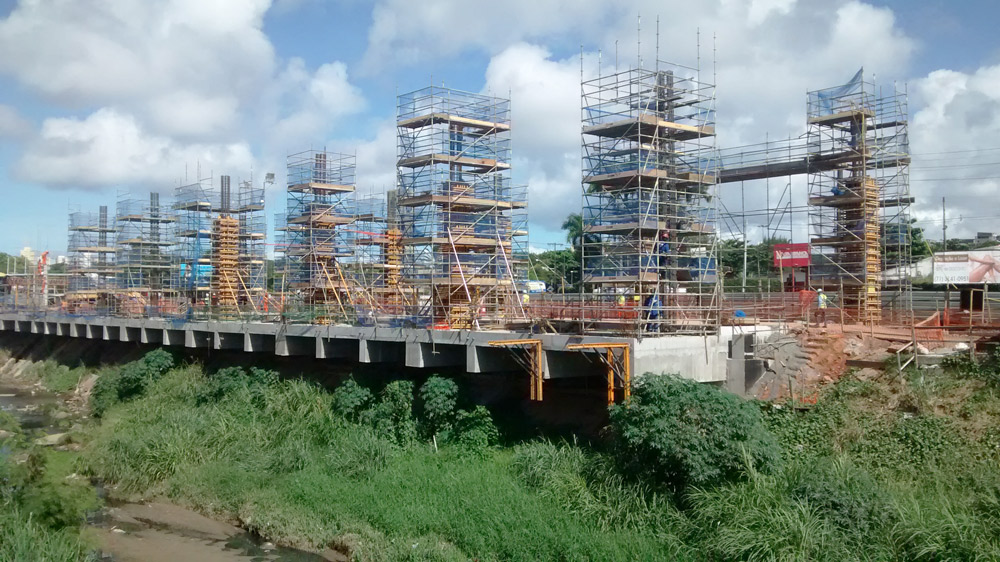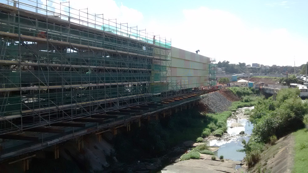 Esta obra tem a particularidade de não exigir aberturas para a passagem do maquinário; portanto, optou-se por torres isoladas com um custo inferior em relação a outras estruturas metálicas normalmente utilizadas. Utilizou-se o Andaime BRIO como cambota e como andaime nas primeiras concretagens assim como a Cambota T-60 quando se exigia carga maior.