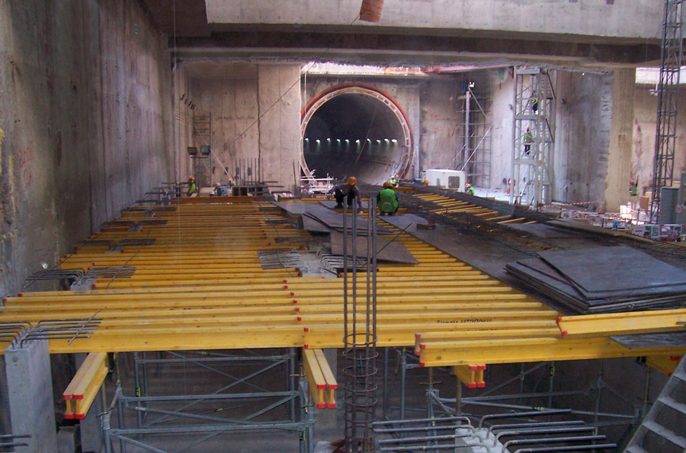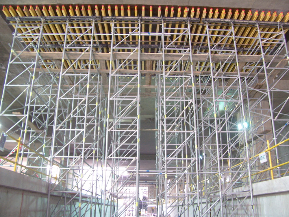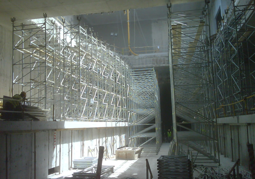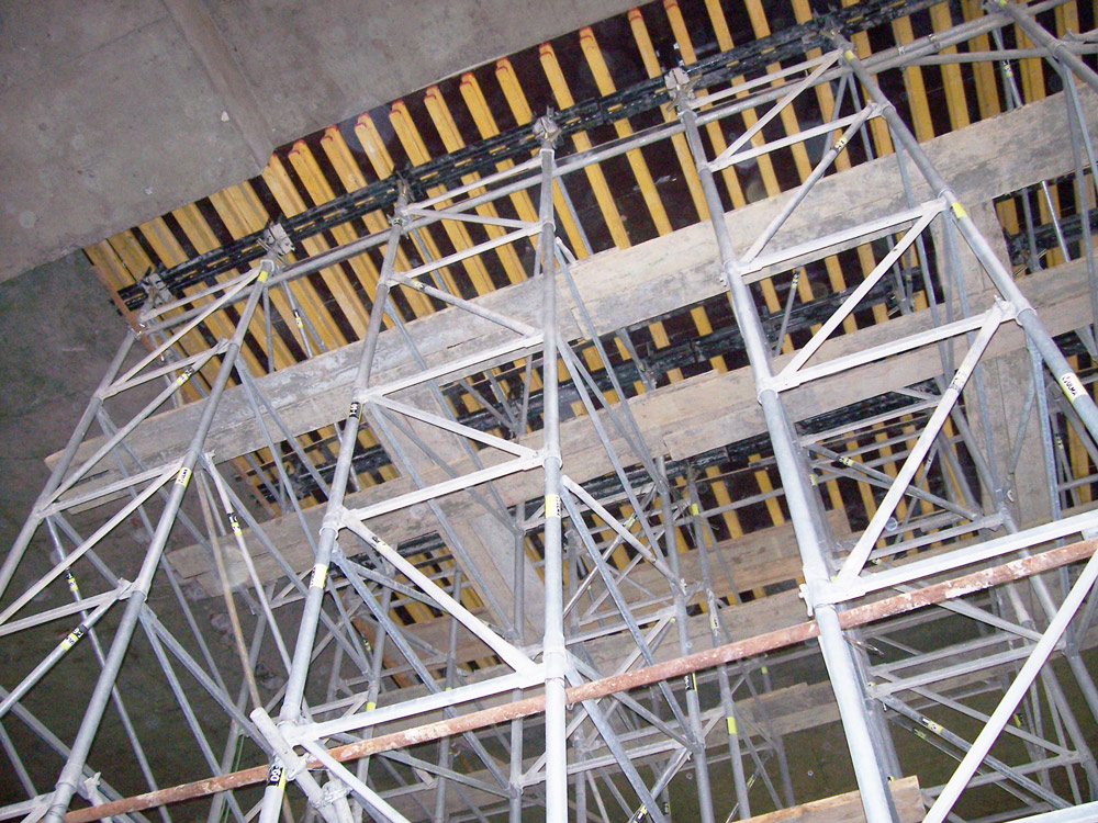 Como em todos os casos, tanto o Sistema ENKOFLEX como os restantes produtos instalados ofereceram os mais altos padrões de segurança e qualidade. A transmissão de cargas até uma altura de 12 m entre lajes foi realizada com torres de Cimbre T-60 em conjunto com Escoras EP. As torres de cimbre, de montagem rápida e simples, facilitaram o seu deslocamento de uma localização para outra, já que não foi necessário desmontá-las para utilização na aplicação seguinte.