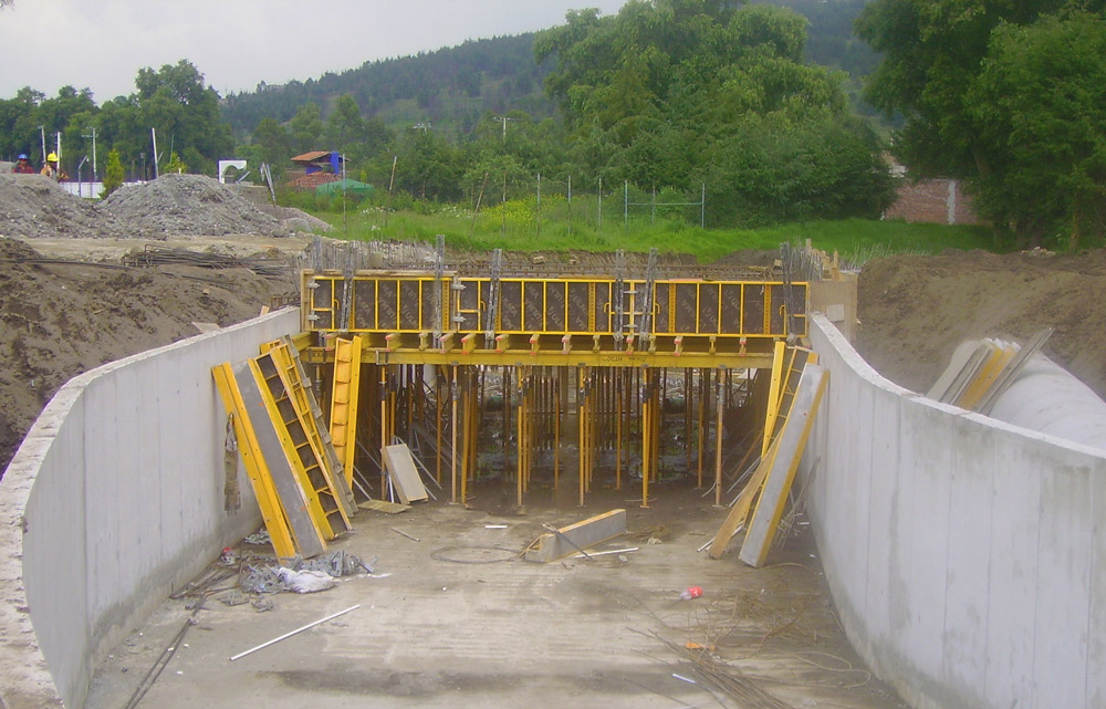 Enquanto eram efetuadas as obras de represamento, foram construídas duas pontes, uma para pedestres e outra para veículos, com a dimensão de 7 x 10 metros, para permitir atravessar o Rio Chiquito. Na sua execução foi utilizado o sistema ENKOFLEX nas lajes e o sistema NEVI para pilares e paredes.