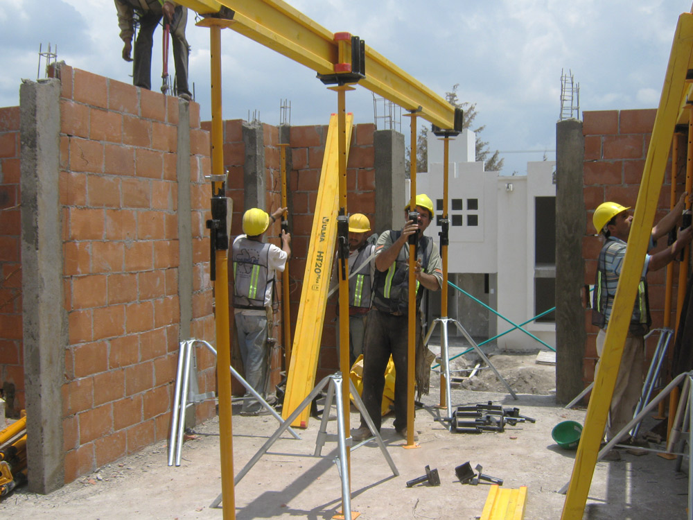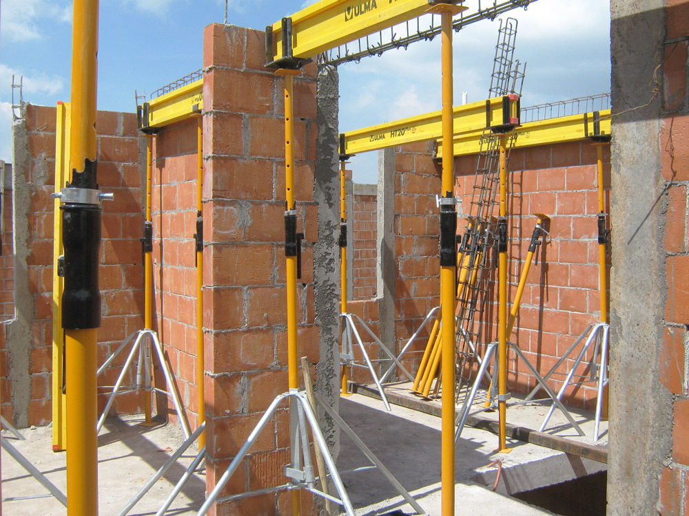 As habitações, com lajes e vigas, foram executadas com ENKOFLEX. Por tratar-se de uma fôrma de vigas independentes, é um sistema versátil e permitiu a adaptação de forma adequada às lajes irregulares. Como sistema de apoio foi utilizado a Escora SP em conjunto com o Cabeçal Direcional VR; estruturas diversas como os peitoris com sistema COMAIN. Esta fôrma é adequada para qualquer tipo de obra nas quais seja necessário um bom acabamento, desde pequenas até grandes superfícies.