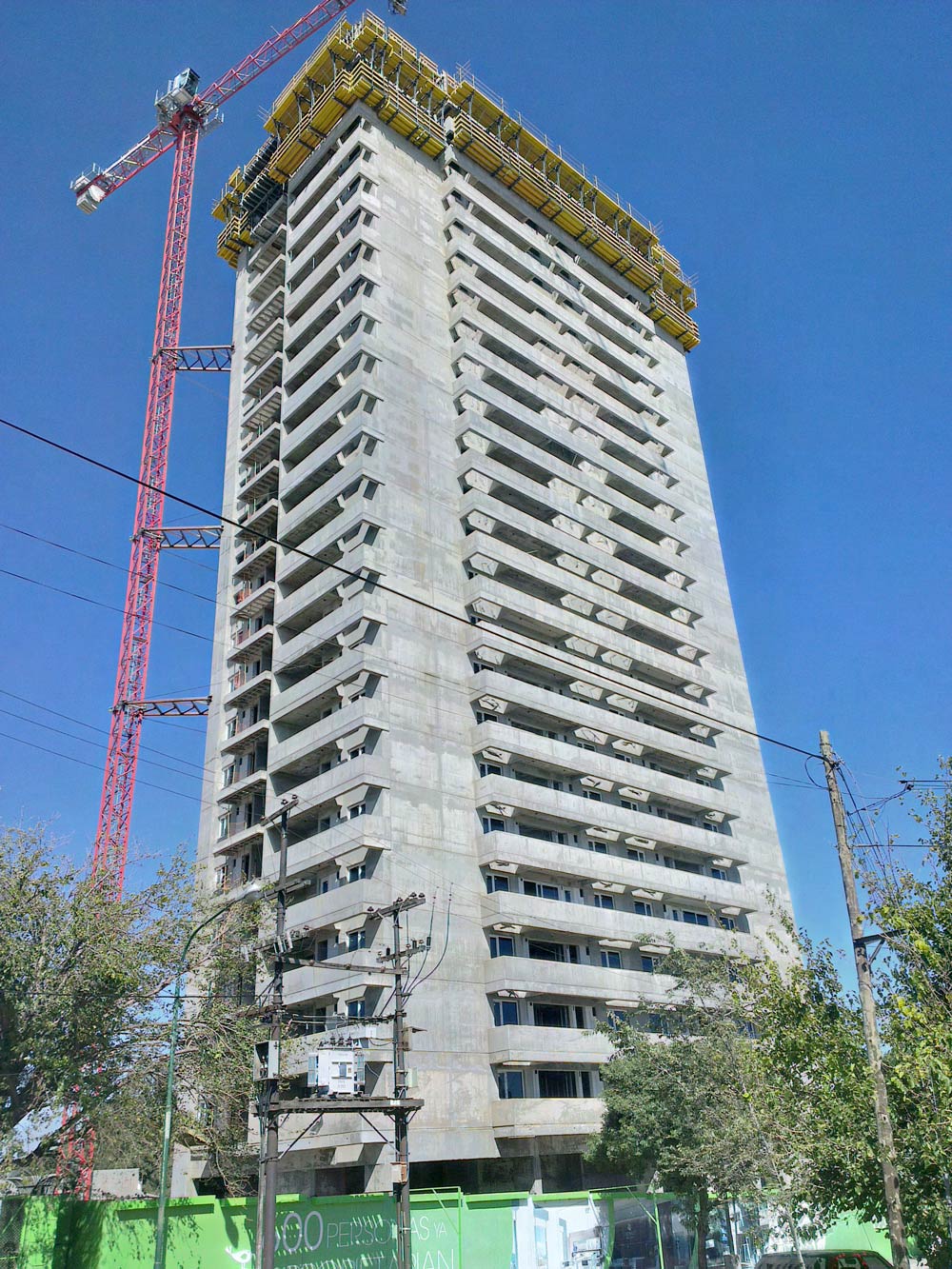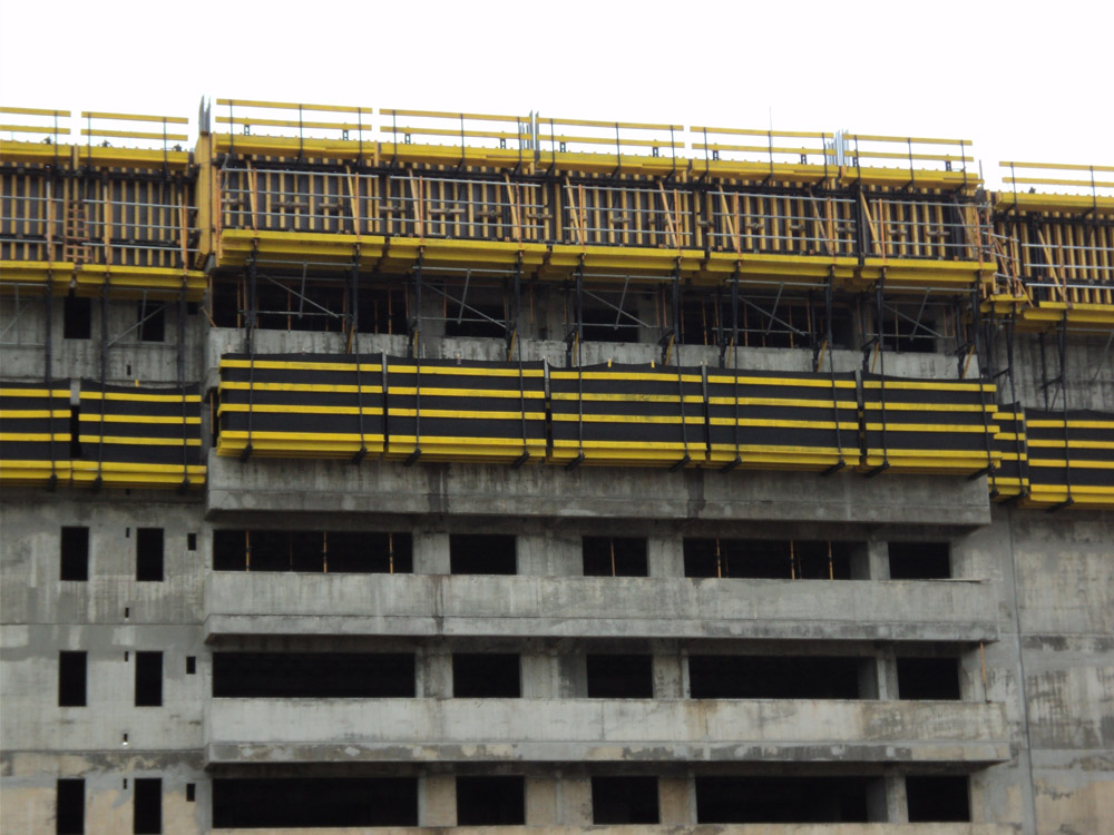 No perímetro exterior empregou-se o Console Trepante CF-170. E para plena segurança dos operários, utilizou-se a Plataforma Interior KSP nos poços de elevadores e escadas.