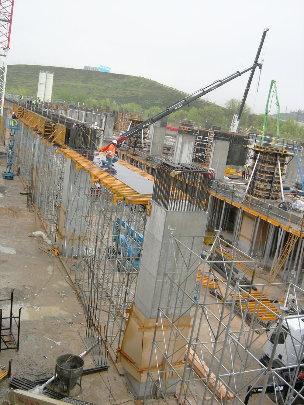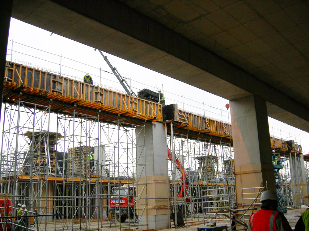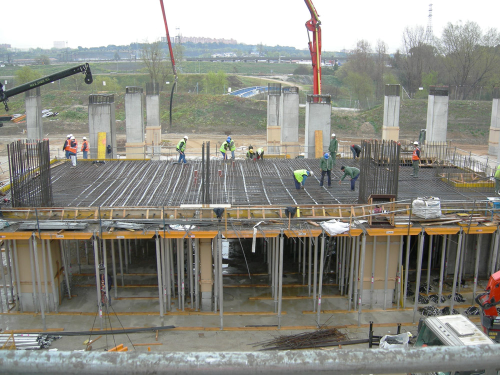 Os pilares de planta quadrada de 1,5 m e quase 9 m de altura, tal como as vigas, exigiram um acabamento de alta qualidade. Para o efeito, foi montada no local a Fôrma Vertical ENKOFORM V-100 que permitiu a concretagem em uma única etapa.