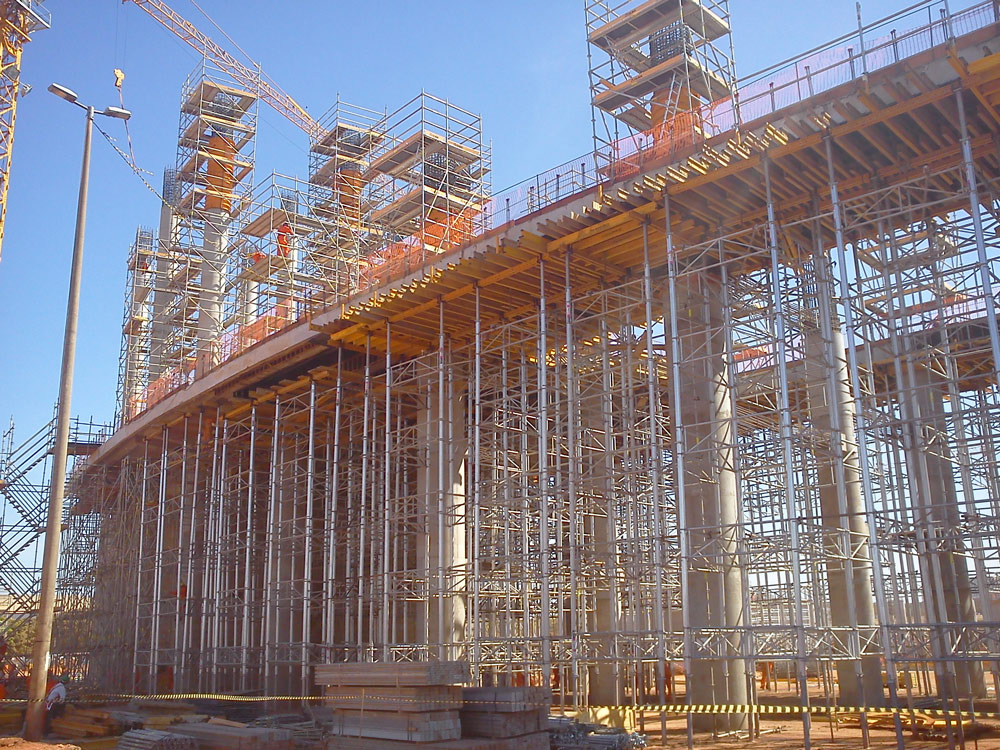A construção do anel de compressão (22 m de largura e 46 m de altura) representou o maior desafio do projeto do ponto de vista técnico. Foi aí que a ULMA reforçou seu valor como empresa líder em tecnologia de fôrmas. Estruturas MK, apoiados em consoles atados nos 288 pilares, suportou a estrutura do anel, solução que evitou o uso de um grande volume de escoramento tradicional e proporcionou uma economia considerável de tempo e custos. Para as vigas jacaré (12 m) foram utilizados para o escoramento Estruturas MK apoiados com Cimbre BRIO.