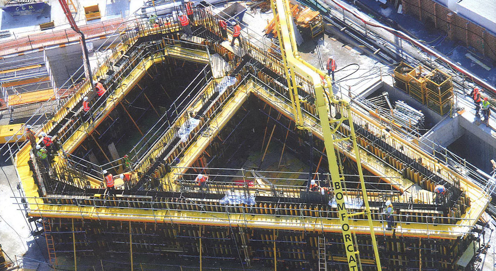 O núcleo central tem dois andares e foi executado antes das lajes com o Console Trepante 2000 e ENKOFORM V-100. Grande parte das lajes foram construídas com fôrma horizontal RAPID e em alguns casos com ENKOFLEX.