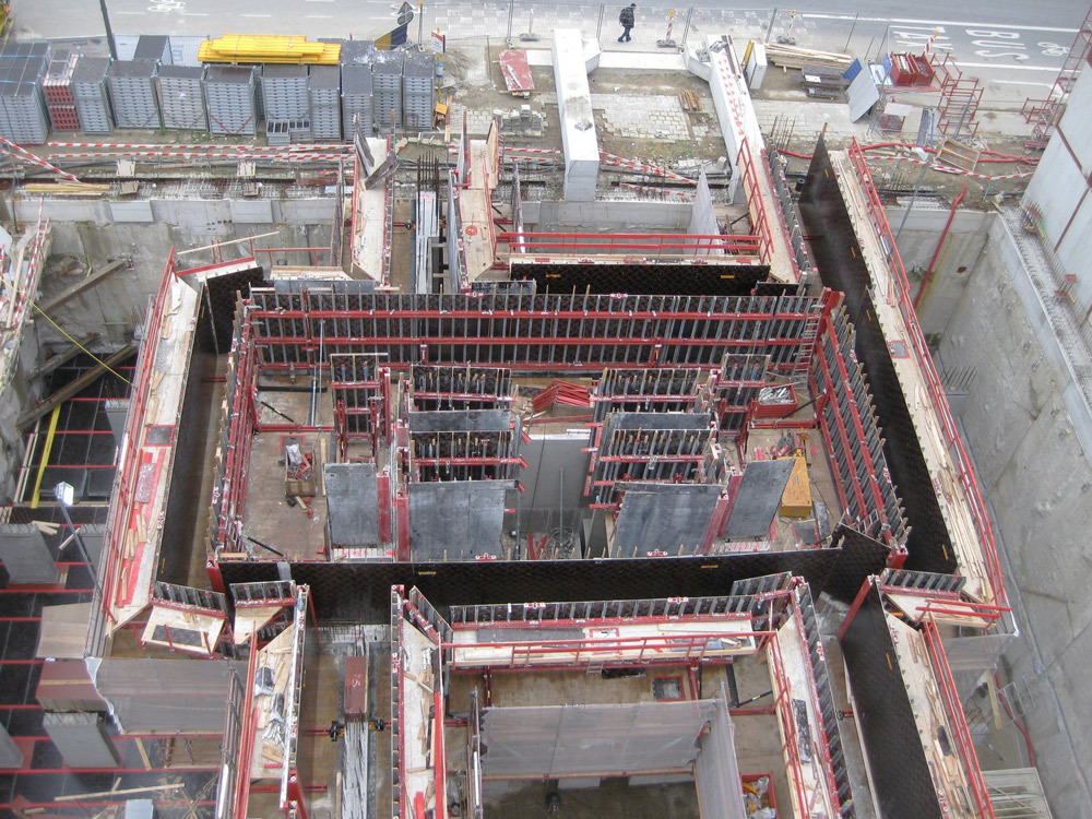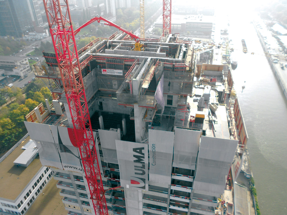 O núcleo do edifício foi construído com o sistema autotrepante ATR e plataformas estreitas para vãos interiores. Dada sua versatilidade, se utilizou sistema de fôrma vertical.