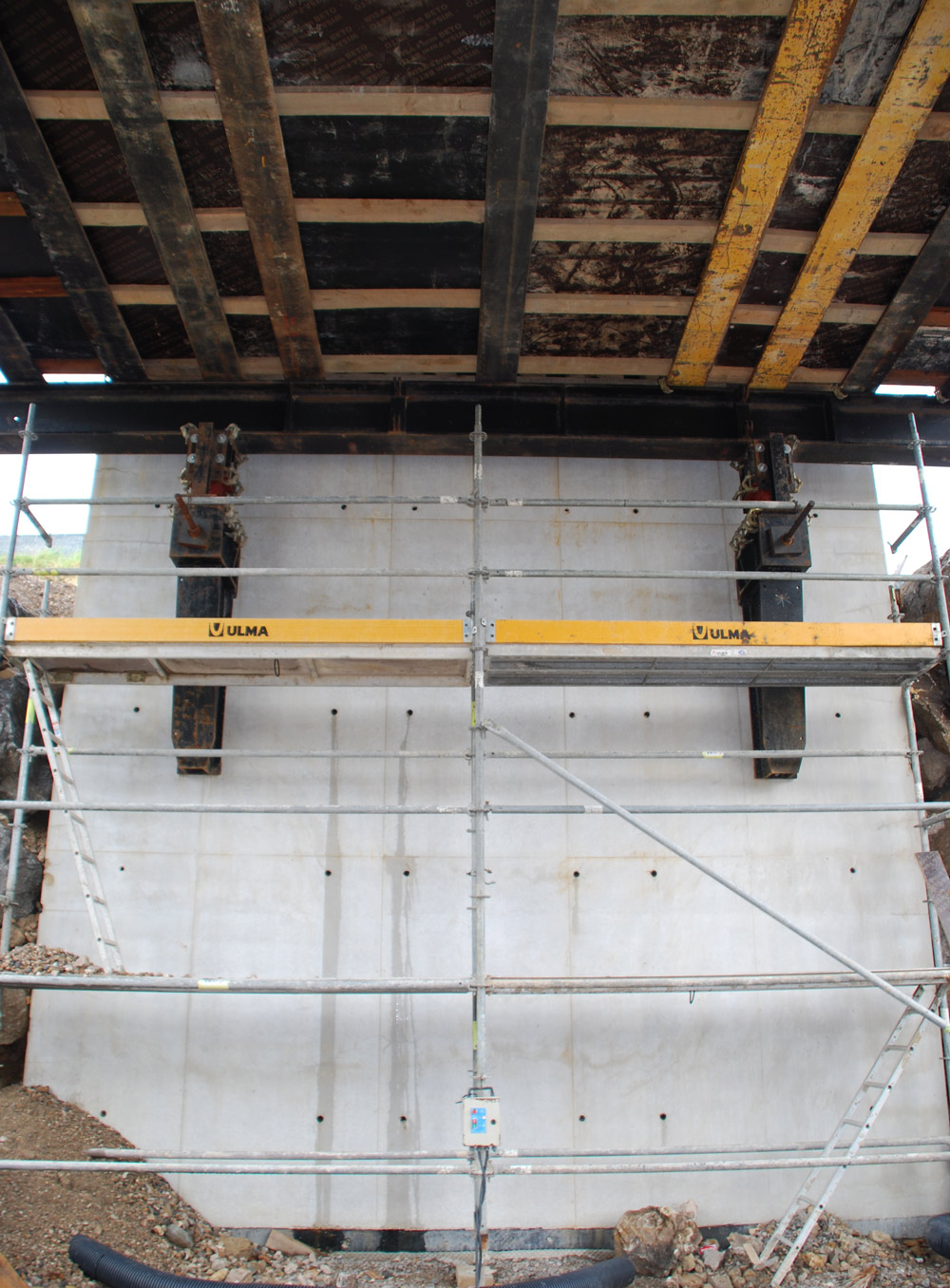 Nas áreas mais leves, utilizou-se o escoramento Cimbre OC, e as mais pesadas o Cimbre T-500. Nos encontros, a fôrma se apoiou sobre martelos MT. Estes estribos foram executados om a Fôrma Vertical ORMA.