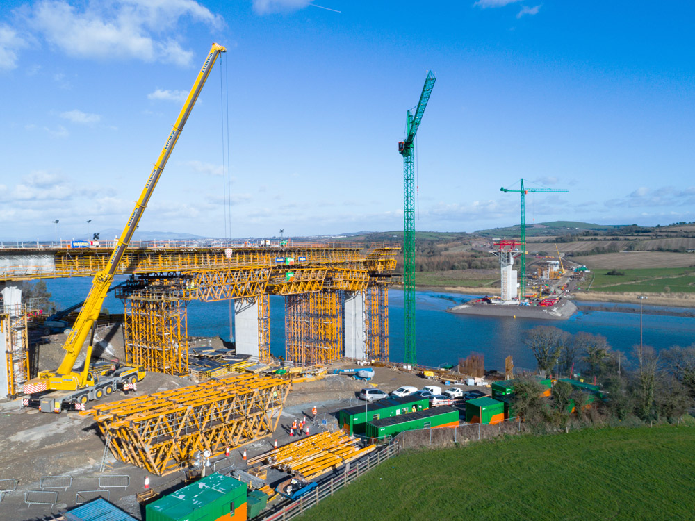 A ponte sobre o rio Barrow, é uma estrutura extradorsal de 887 metros que será a mais longa do mundo em sua categoria. Essas tipologias de pontes são caracterizadas por ter suportes menos inclinados e, portanto, os pilares têm menor altura em comparação com as dimensões das baias da placa.