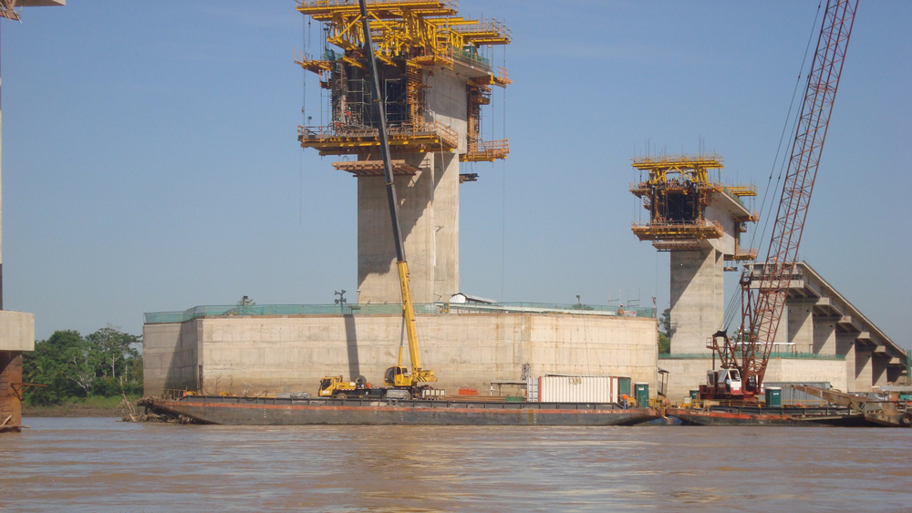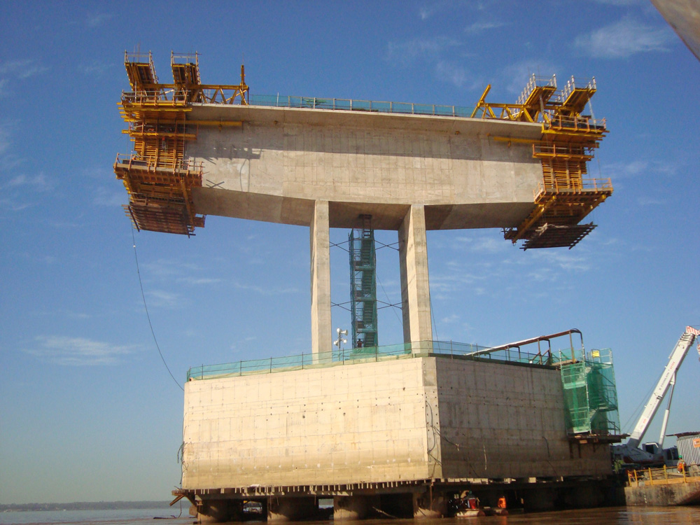 Fornecimento dos sistemas para pilares e blocos de fundação, com a Fôrma Portátil COMAIN, que atingiram um excelente nível de produtividade e acabamento de concreto. Para a construção das 84 aduelas com seções variáveis entre 3 m e 4,25 m de comprimento, e altura entre 2,80 e 6,75 m em Balanço Sucessivo, utilizou-se o versátil sistema de Fôrma Vertical ENKOFORM VMK, garantindo a qualidade e acabamentos de concreto desejados para tal obra de arte. O Andaime Multidirecional e Escada BRIO garantiram com os acessos todas as áreas da ponte.