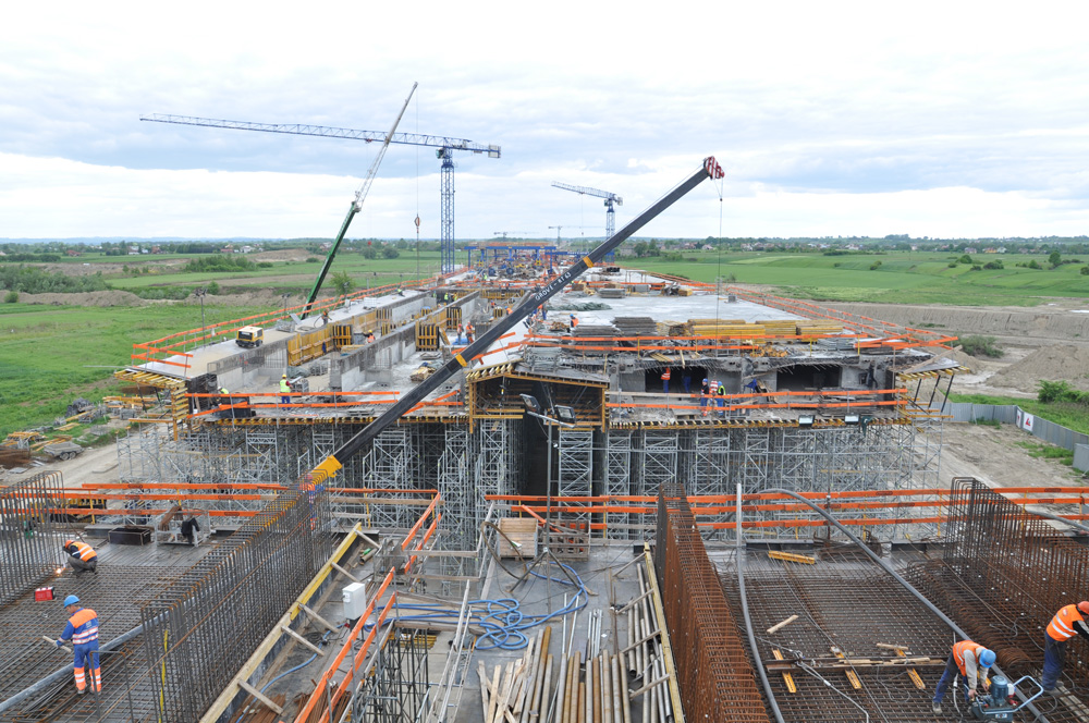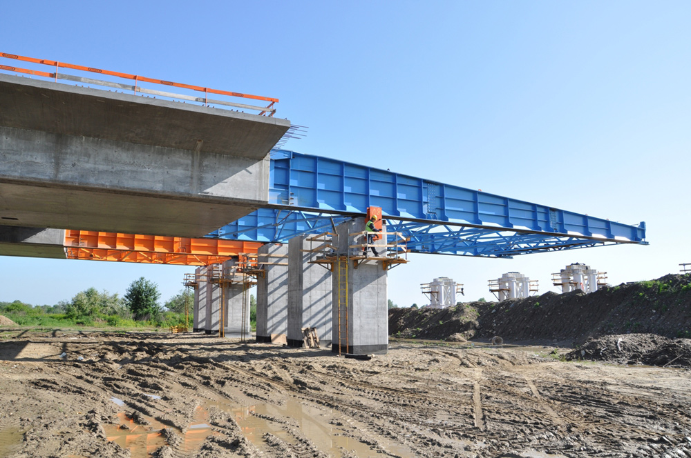 As características da pista forçaram-nos a utilizar dois sistemas construtivos: o tradicional, com escoramento Cimbre T-60 e Cimbre OC- e o principal, com o sistema de ponte empurrada. Foi a primeira vez que este sistema foi utilizado na Polônia na execução de uma ponte com tabuleiros ocos interiores em seção transversal. Com esta solução, a ULMA pode fazer secções de 30 metros em apenas uma semana, de modo que o tempo de execução de cada seção foi reduzido em 50%.