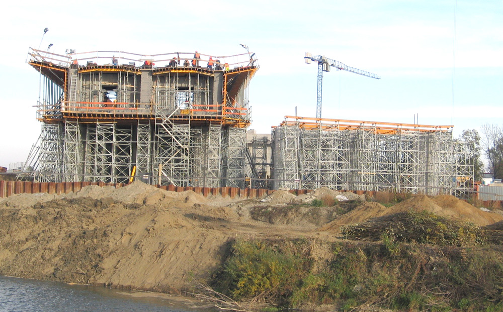 Para facilitar o trabalho a um clima adverso e melhorar a configuração de concreto, foi construída uma cobertura sobre parques fixos. Para isso, foi utilizado o Andaime Multidirecional BRIO, apoiado em torres MK, caminhou sobre trilhos.