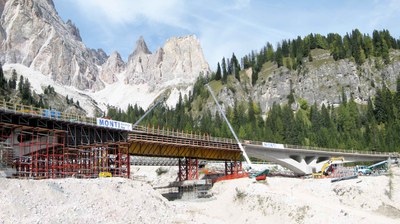 Esta ponte, localizada ao norte da Itália, conta com 3 vãos, seção variável e foi concretada in loco.