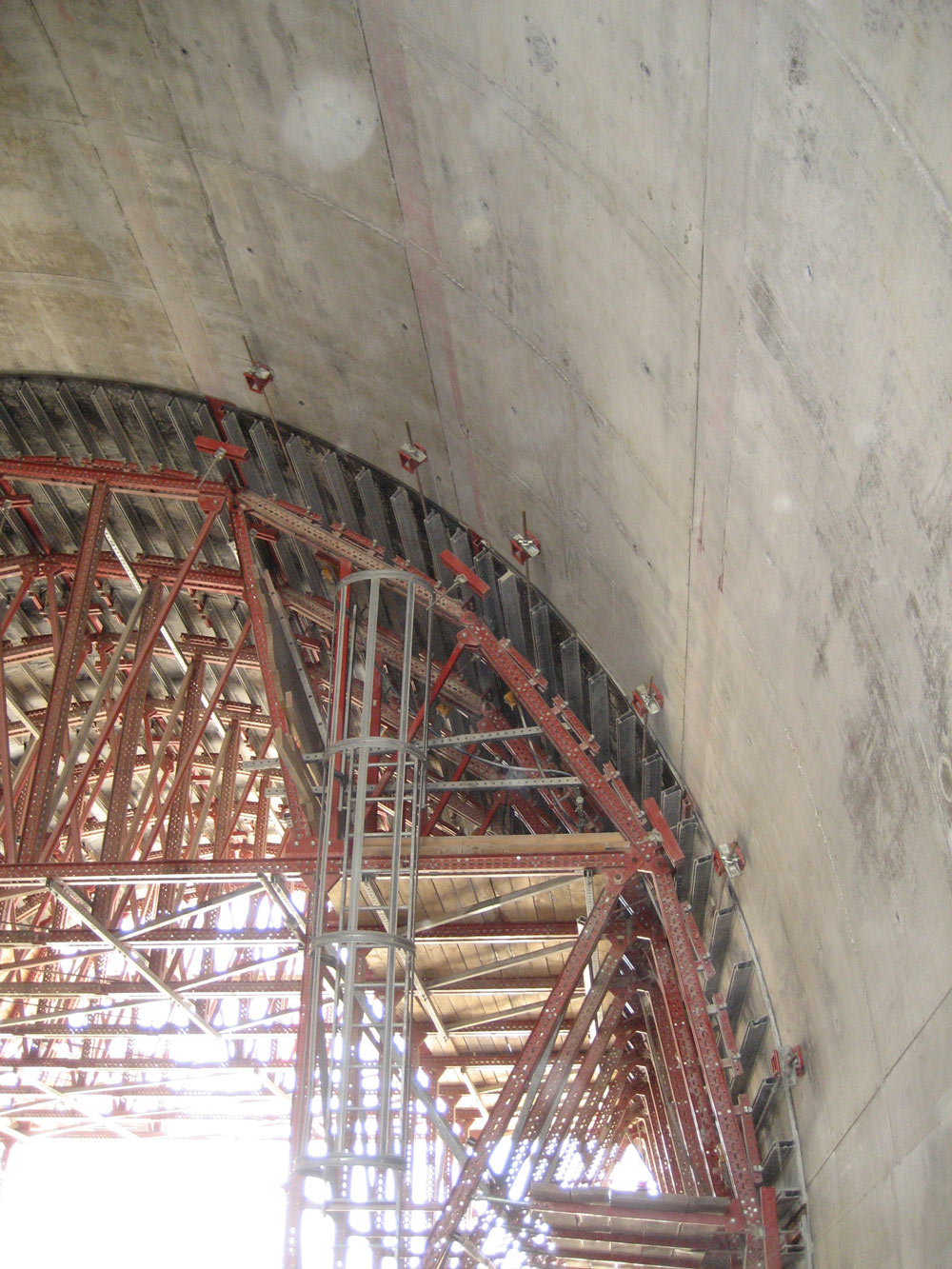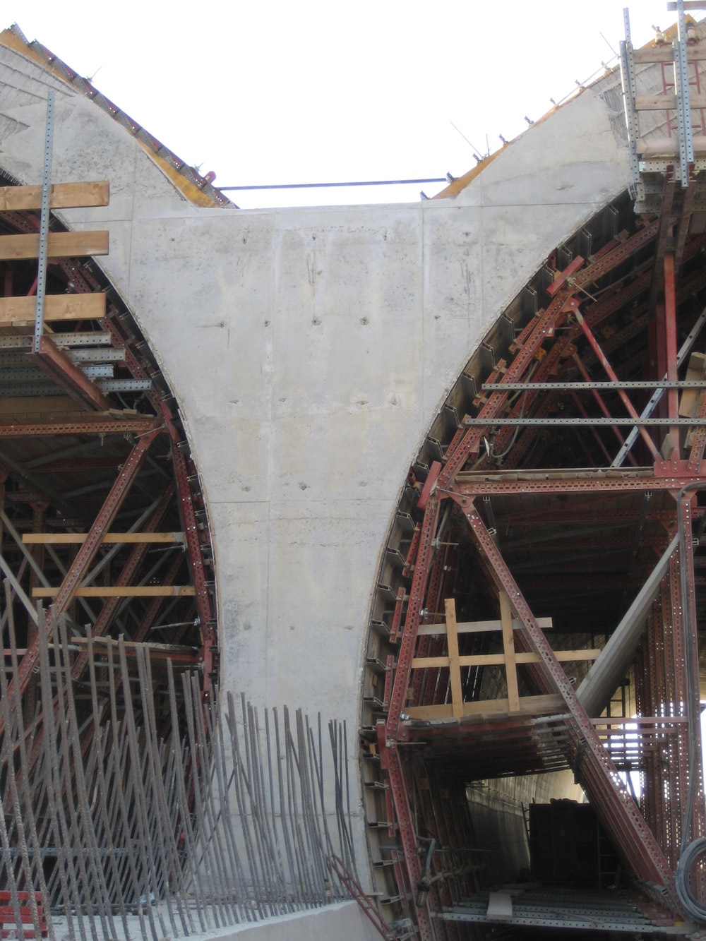 A fôrma interior estava equipada com um sistema hidráulico, que permitiu o seu deslocamento tanto na vertical como na horizontal, conseguindo assim um maior rendimento e baixo custo de execução. As fôrmas dispuseram também de um sistema pneumático de vibração exterior, que proporcionou ao concreto um acabamento de alta qualidade e reduziu o tempo de execução.