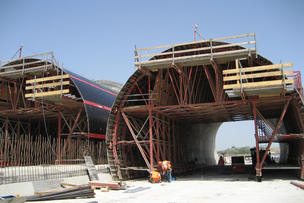 A flexibilidade do MK evitou a utilização de moldes de madeira para criar as formas curvas necessárias. Os trabalhos em altura e os acessos a todas as estruturas foram realizados de forma segura e rápida, graças às plataformas de trabalho com as suas correspondentes escadas.