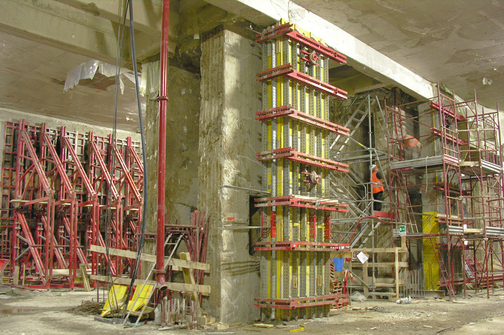 - Montagem: na ULMA. A mobilidade do sistema facilitou a descida da parte central em cada avanço para evitar interferências na laje pré-existente.