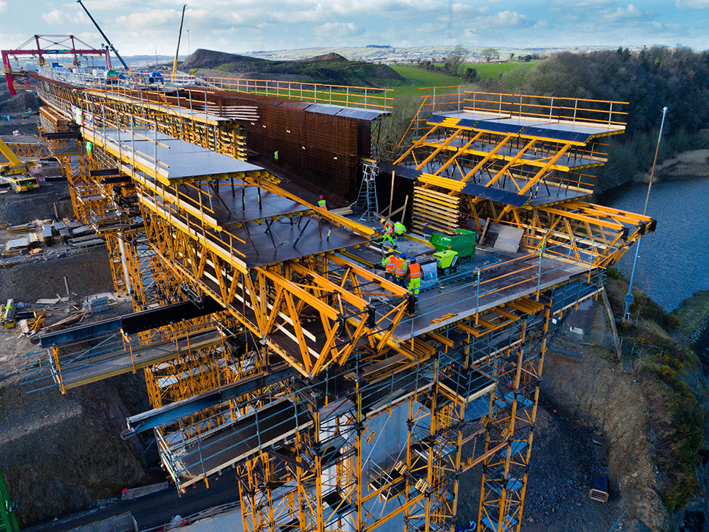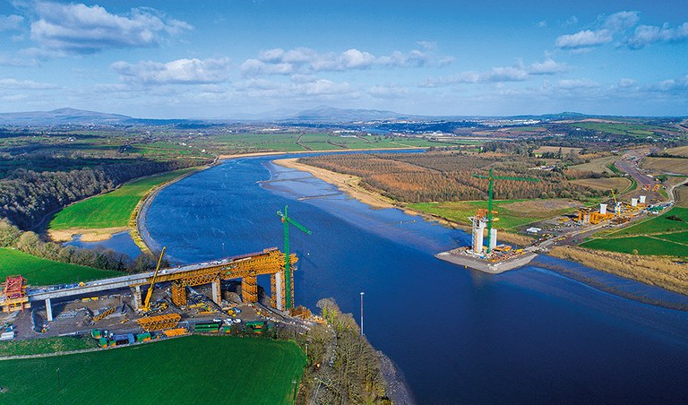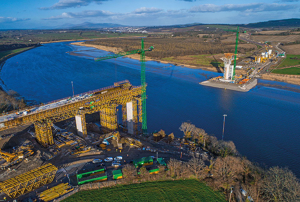 A ponte sobre o rio Barrow, é uma estrutura extradorsal de 887 metros que será a mais longa do mundo em sua categoria. Essas tipologias de pontes são caracterizadas por ter suportes menos inclinados e, portanto, os pilares têm menor altura em comparação com as dimensões das baias da placa.