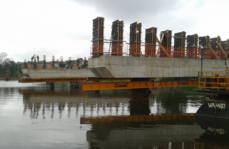 No trecho 07, a fôrma ENKOFORM mostrou toda sua versatilidade trabalhando em conjunto com a treliça lançadeira para a execução do tabuleiro dos viadutos. Os vãos eram concretados em 2 etapas de aproximadamente 30 metros cada. Após a cura do concreto, um sistema hidráulico da treliça lançadeira descolava as fôrmas para a execução do vão seguinte.