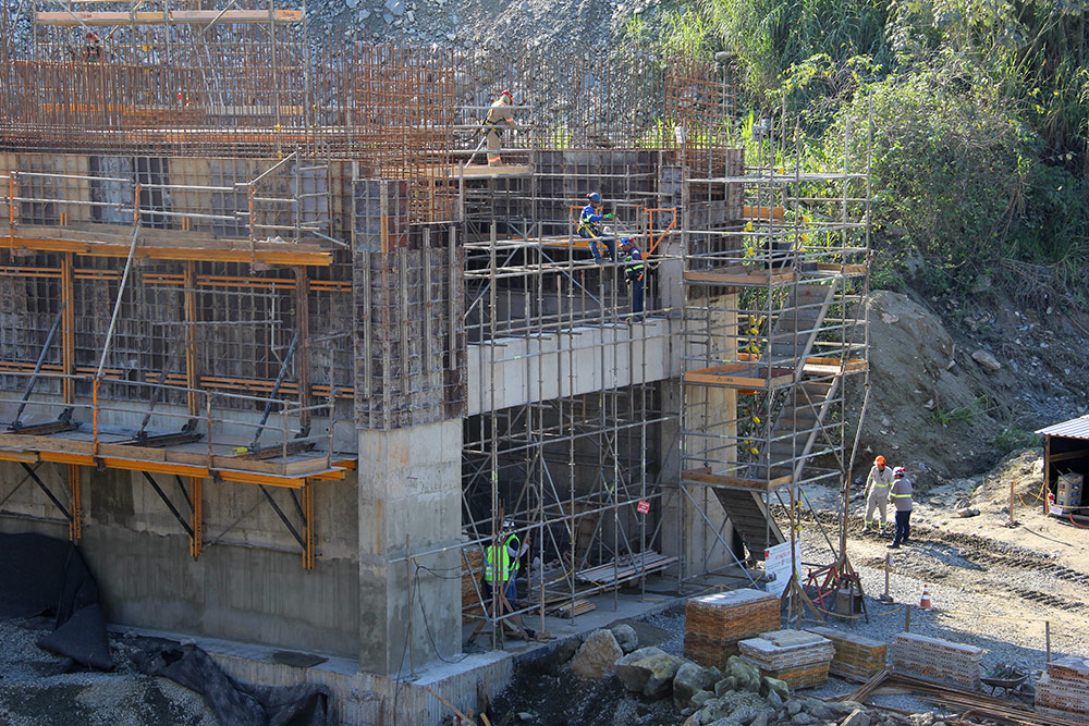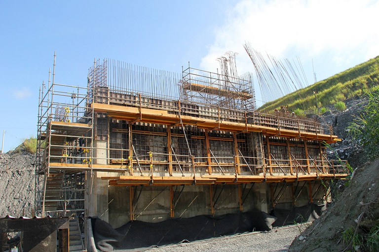 Devido à complexidade da estrutura e suas condições executivas, foi utilizado o sistema de fôrma COMAIN com o Console Trepante BMK para as paredes externas. Os conjuntos de içamento, console e forma, tinham em média 18 m² e resultaram em alta produtividade no processo de execução das paredes do Britador com 35 m de altura. Os diferentes níveis de lajes, com 80 cm de espessura, também contaram com o sistema COMAIN como formas de fundo e de fechamentos laterais. E os sistemas Cimbre T-60 e Cimbre BRIO para escoramento, com torres de alta capacidade de carga que se adaptaram facilmente as geometrias das vigas e lajes. Além disso, os acessos de até 35 m de altura, foram solucionados com total segurança com o Andaime Multidirecional BRIO.