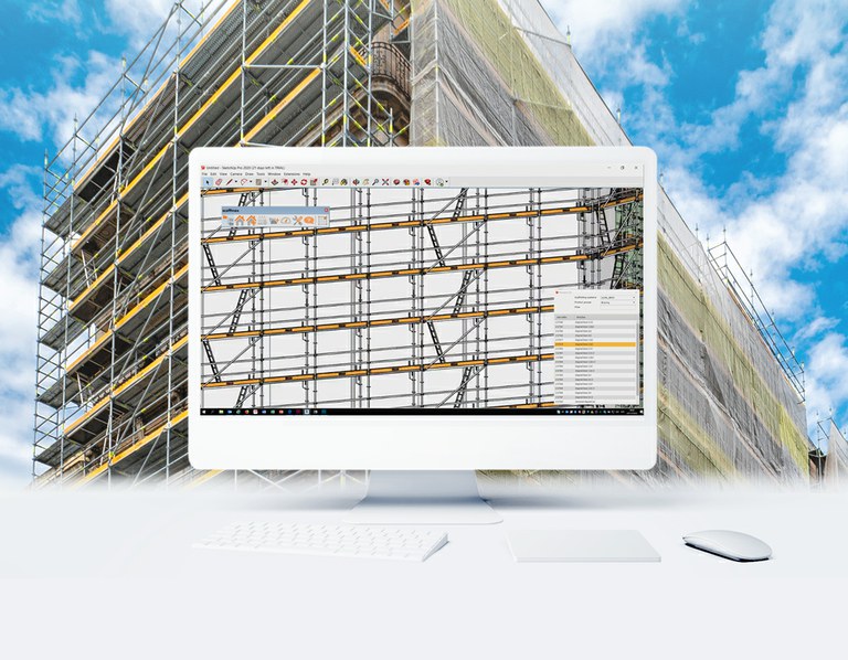 Scaffmax®, um add-in para SketchUp® Pro, é outra das ferramentas que colocamos à disposição do usuário para completar a oferta digital de andaimes. O Scaffmax® permite selecionar os critérios de aplicação mais adequados ao cliente, e depois montar o andaime BRIO e DORPA em questão de segundos em uma estrutura 3D gerada previamente no SketchUp® Pro. O software, junto com a possibilidade de gerar listas de materiais e projetos com o clique de um botão, também possui pontos de inserção inteligentes para fazer correções manuais.